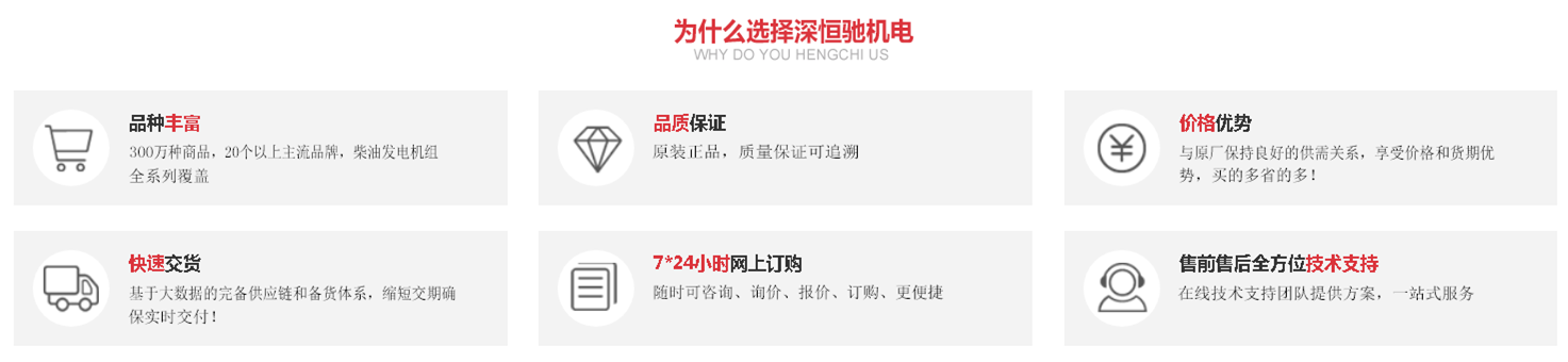 深圳市恒馳機(jī)電設(shè)備有限公司成立于2004年,是集柴油發(fā)電機(jī)組及配套零部件的銷售、維修保養(yǎng)服務(wù)為一體的企業(yè)。公司在柴油發(fā)電機(jī)組及發(fā)動(dòng)機(jī)配件行業(yè)二十多年?duì)I銷實(shí)踐中,積累了豐富的市場(chǎng)信息和管理經(jīng)驗(yàn),具有全求化的零件采購(gòu)體系和網(wǎng)絡(luò),并因公司貨物品種齊全、品質(zhì)純正、價(jià)格低廉、服務(wù)迅捷而深得用戶信賴。